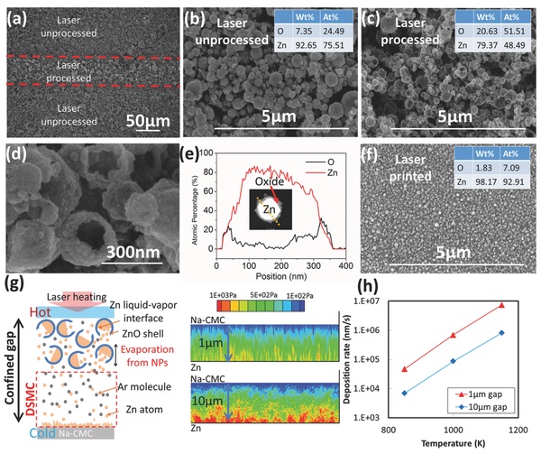 图二、 激光打印处理前后Zn纳米粒子的表征