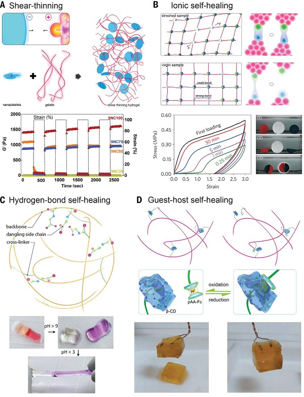 水凝胶的力学性能已经大幅度提高,同时,其剪切稀化性质、自修复能力和响应性质也有所增强。此外,已经有技术可以在时间和空间层面精准控制它的形状,结构和构造。