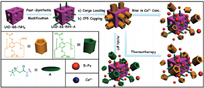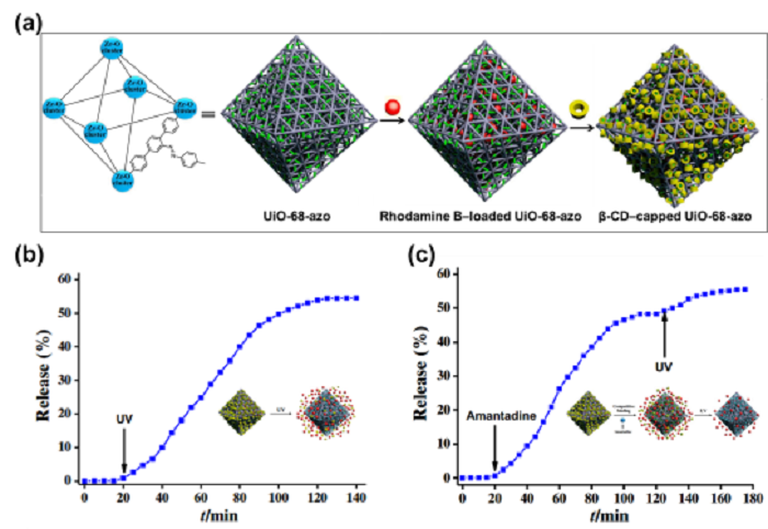 (a) 基于β-环糊精(β-CD)修饰的UiO-68-azo MOF的双刺激响应型的药物传递系统;