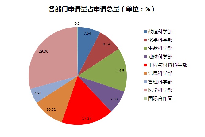 那么,化学科学部和工程与材料科学部各自占全部申请量的多少?