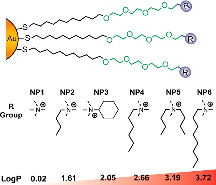 图1 研究中使用的随着疏水性依次递增的纳米晶颗粒,Log P 代表了官能团疏水性的相对值