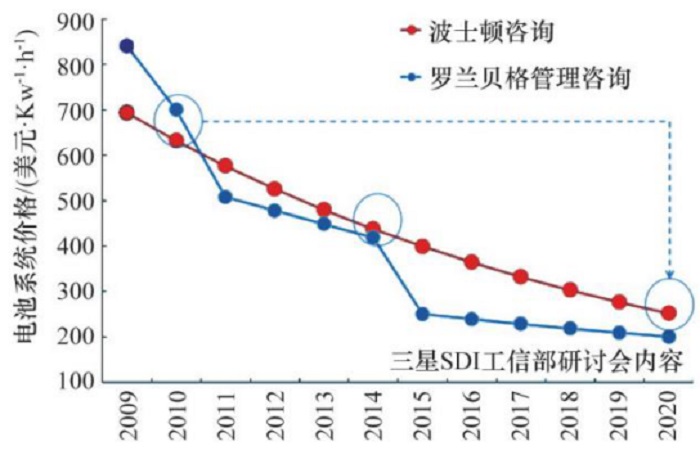 图1 全球动力电池系统价格的变化趋势