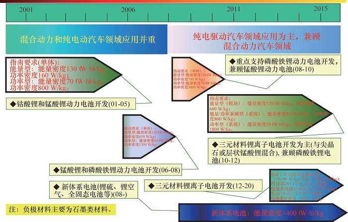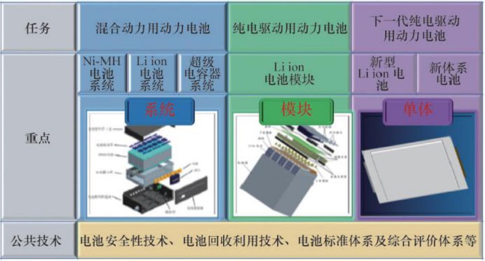 综上所述,以中、美、日、韩、德等为代表的各国形成官产学研的开发体制,积极开展锂离子动力电池的技术攻关研究。