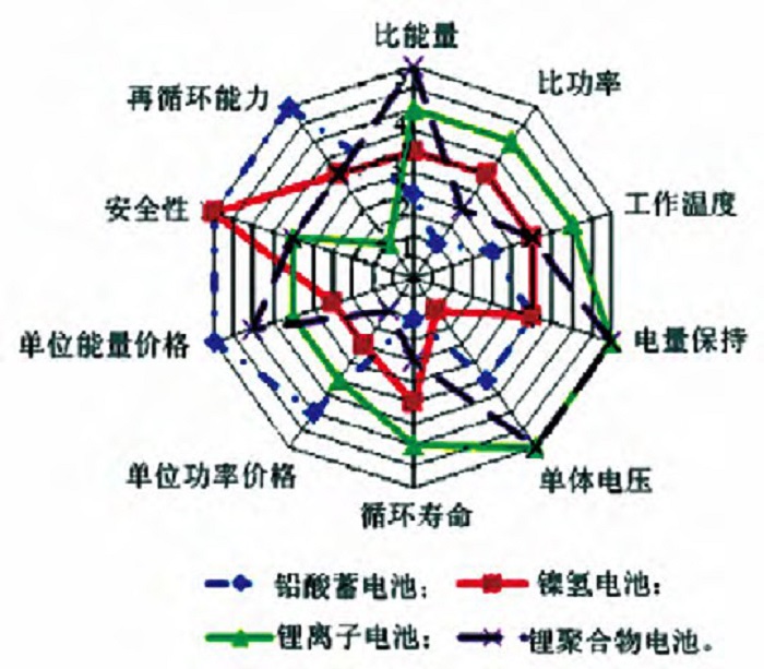 图2电动汽车电池性能比较
