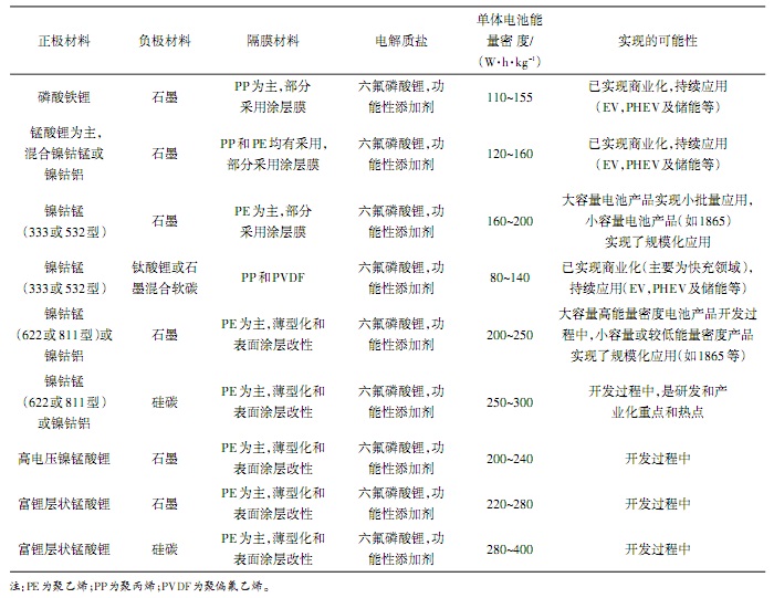 动力电池2020年预期实现产业化的材料体系及单体电池技术指标如表4所示。