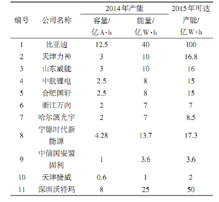 表3 中国主流动力电池公司产能统计