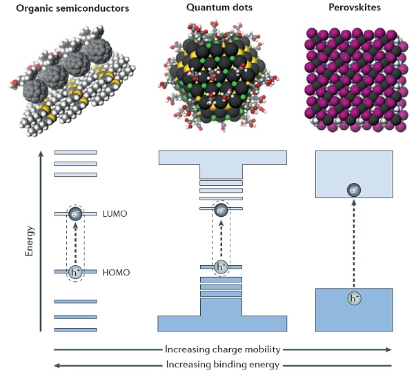 图1 有机半导体、量子点和钙钛矿的电子特性