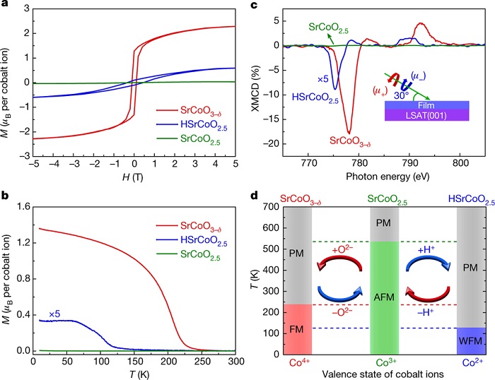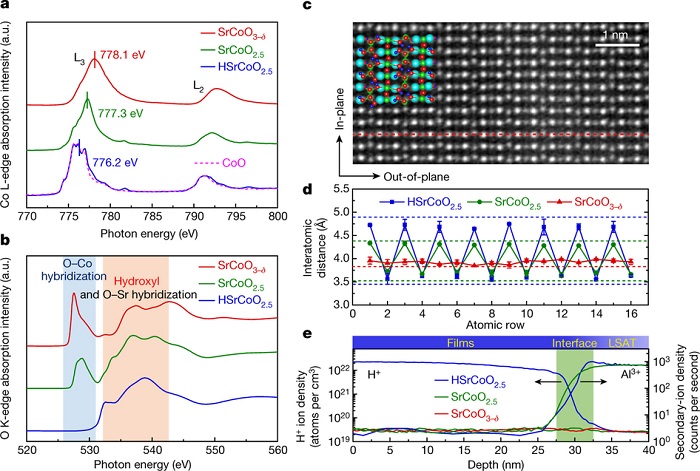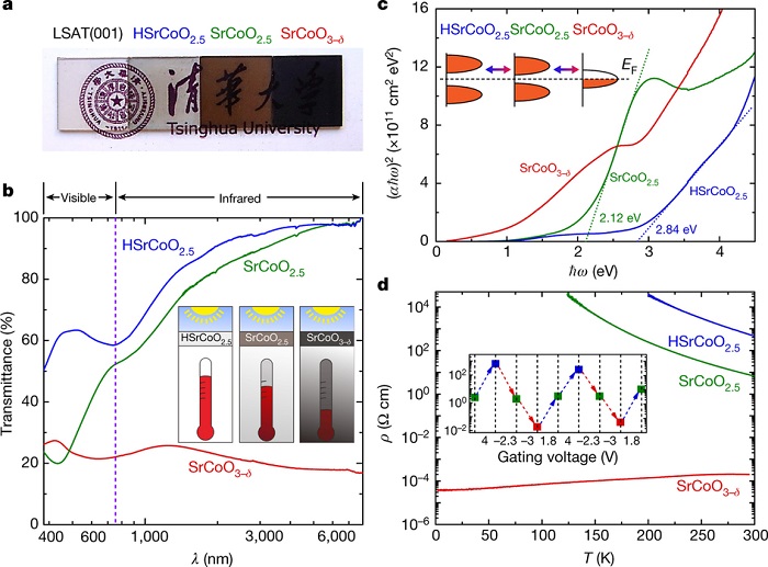 图一、电场调控,SrCoO3-δ、SrCoO2.5和HSrCoO2.5(A)间的三相转变