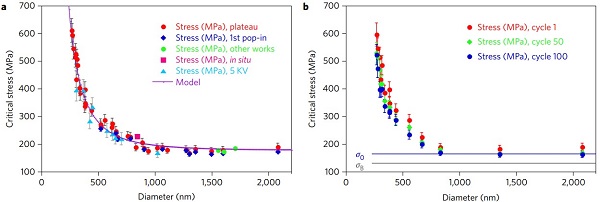 文献链接:Size effect and scaling power-law for superelasticity in shape-memory alloys at the nanoscale (Nat. Nanotech., May 29, 2017, DOI: 10.1038/NNANO.2017.91)