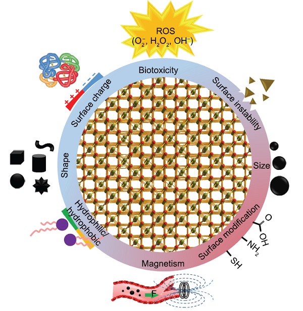 为达到最佳疗效,治疗剂必须达到足够的剂量来杀死肿瘤细胞,但同时也不会对正常组织产生不利影响。具有大体积或表面积的MNPs可以携带足够的药物分子,同时避免RES的清除。因此,形状和大小需要仔细考虑和优化,因为它们会影响体内的药物释放和药代动力学。