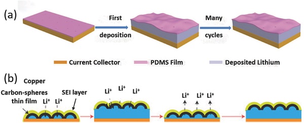 a)在涂覆多孔PDMS薄膜的Cu基底上沉积锂;