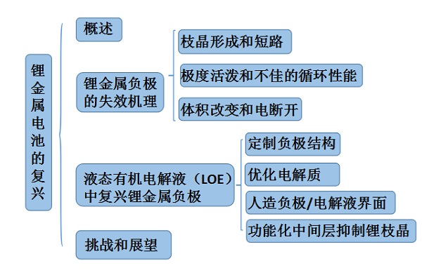 复兴锂金属电池,有望作为下一代高能电池的负极材料。本文对将锂金属电池的最新进展进行了总结,对锂金属负极的问题及其基本失效机理进行了深入的讨论。并结合指导性原则操纵锂离子的沉积行为,抑制锂枝晶的形成/生长,抑制与活性锂相关的寄生反应,以减少循环时的体积变化。本文综述了过去三年液态有机电解质系统中锂金属负极的发展和代表性工作,包括定制负极结构、优化电解质、建造人造负极-电解质界面和功能化中间层。最后介绍了LOE系统中仍然存在的挑战,并给出了引入固态电解质以彻底解决安全问题的未来展望。