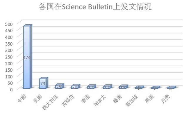 从发表文章的国家来看,大部分文章还是来自中国,但是来自其他国家和地区,比如美国、澳大利亚、英格兰、加拿大等的发文量还是占据一定比例的,这也反映了Science Bulletin正在吸引着国外的优秀作者投稿,具有一定的国际影响力,也正与其成为与中国HTH官网地址