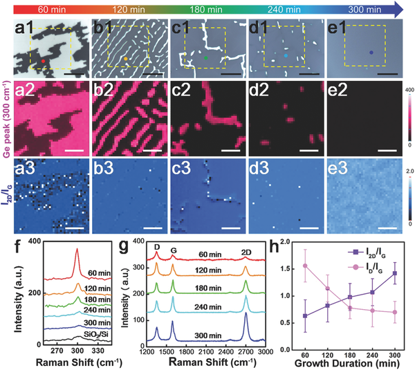 a2-e2)作为生长时间函数的Ge峰强度的拉曼映射
