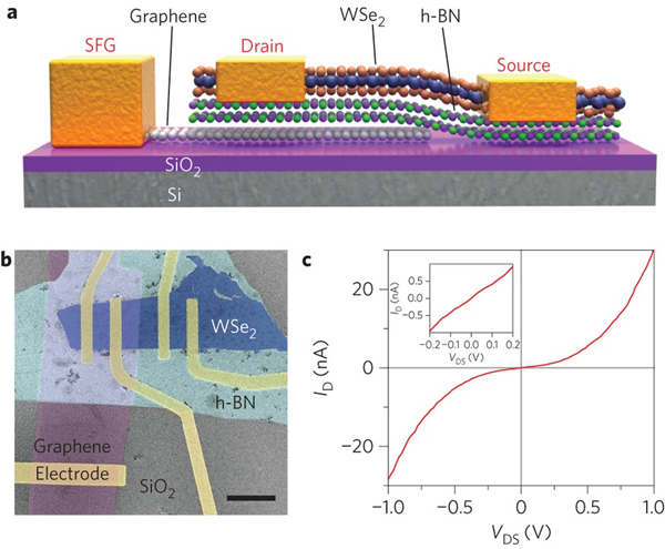图1. 构成SFG-FETs的WSe2/h-BP/graphene 堆垛范德华异质结构