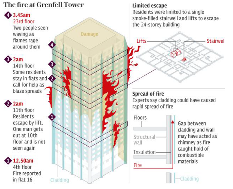 显然,此次伦敦大火中的建筑,对其中的每一条都有违反之处,因此是一种认识上的错误,即所谓的“人祸”。透过这些人为的失误,我们可以更好地认识高层建筑火灾中的火灾动力学和人群动力学的安全原理。