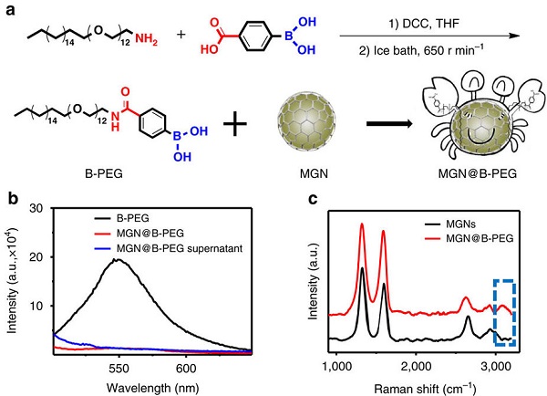 (a)B-PEG的合成及对MGN的功能化示意图;