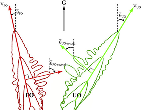 图2 一次和二次枝晶臂的生长方向原理图示
