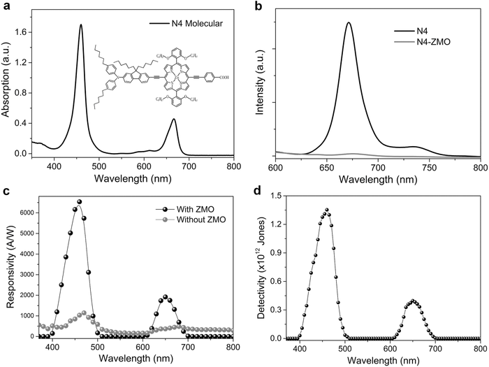 (a)N4分子在Zn0.9Mg0.1O纳米粒子层上的典型吸收;