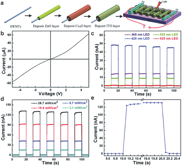 (a)ZnO-MWCNT混合纸UV光电探测器的方案;