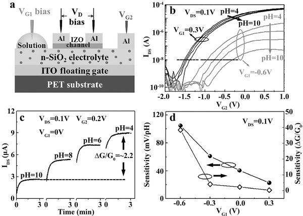 在ISFET中,感测层可以形成导电沟道或栅极。已经实现了使用碳纳米管和纳米结构氧化物膜作为通道感测层的柔性电阻调制ISFET。在Maiolo等人的研究中,观察到了Nernstian反应。柔性电容调制传感器可以将其感测层直接沉积在其介电层的顶部上,或者作为扩展门。已经通过使用沉积在塑料基板上的pH敏感的Parylene-C,无定形IGZO,和卷绕RF溅射的ITO膜来证明灵活的扩展栅极,电容调制传感器。只有感应扩展门是灵活的,而设备的其余部分不是。然而最近的研究中,制造了一个灵活的双栅极晶体管,其中两个栅极电容耦合到一个公共的浮栅。优点在于它可以将器件的灵敏度“扩展”到超能守定响应。该器件结构是灵活ISFET的最新发展,并且在生物传感领域的众多应用中有希望实现。