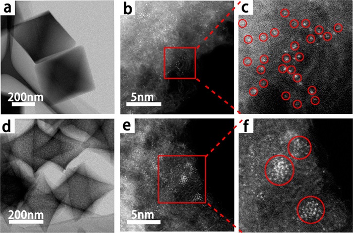 图示 Ru SA / N-C的提出的形成机理。 UiO-66-NH2具有丰富的悬浮-NH2基团,Ru金属离子可以通过电子孤对的氮对和Ru原子的d轨道之间的强配位相互作用吸附在MOF通道内。 热解过程后,UiO-66-NH2的配体和Zr基阳极分别形成多孔C和ZrO2纳米颗粒。 同时,吸附的Ru离子可以被周围的碳还原。 悬浮的-NH2在Ru SA的形成中起关键作用,可以很大程度上限制Ru原子在高温下的扩散并与相邻的Ru原子键合。 没有悬浮的-NH2,Ru离子倾向于在高温下甚至在MOF的密闭孔中聚集成纳米团簇和小纳米颗粒。