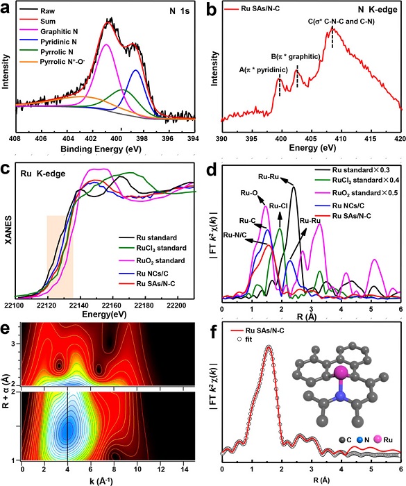 (b)Ru SAs/N-C的NK边缘NEXAFS光谱;