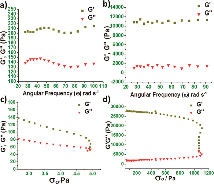 (c) 1 wt%泵油在仅含有凝胶因子情况下,表现出的屈服应力为4.8 Pa;