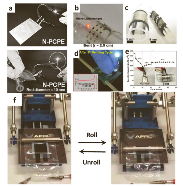 弯曲成一定曲率时,耐受性是柔性储能装置的主要机械变形特性。到目前为止,人们已经提出了几种弯曲特性参数和各种机械方法来评估柔性装置的质量和失效模式。这些机械计量学中的一部分来源于对微机电系统(MEMS)和TFT的柔性半导体器件的早期研究。然而,由于不同研究组采用了各种理论和方法,因此难以比较这些大量的测量数据,缺乏统一的评估标准。柔性器件的灵活性通常不仅通过使用直观的软电极材料而且通过优化其机械结构设计来实现。结合实验和理论结果详细分析不仅提供了可靠的测试方法来描述弯曲状态,而且提供了组件设计的指导,防止了机械故障。