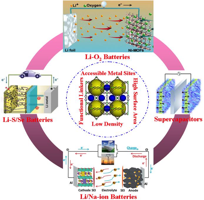 该部分主要探讨了MOFs以及其衍生物在锂离子电池、钠离子电池、锂氧电池、锂硫电池以及锂硒电池中的应用。