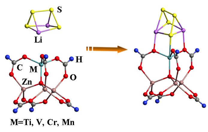 图2. MOFs与Li2S4(一种多硫化锂)化学作用成键方式示意图。