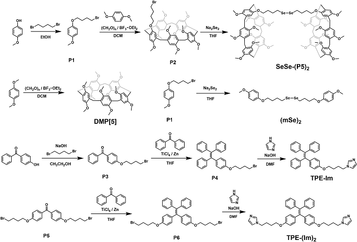 图2 合成SeSe—( P5)— 2 、DMP [5]、—( mSe)— 2、TPE-Im和TPE—( Im)— 2的路线图