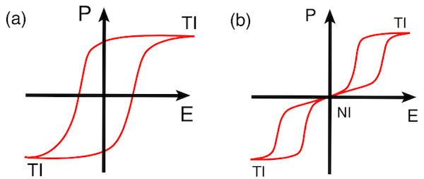 (b) 具有对极正常绝缘体(NI)状态和两个极性拓扑绝缘体(TI)状态的反铁电性拓扑绝缘体示意图。在本文中被称为I型反铁电性拓扑绝缘体。