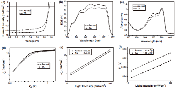 (a). 热处理前和热处理后的J-V曲线;