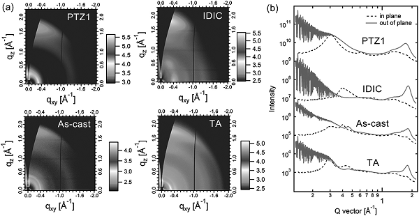 (a).PTZ1和IDIC的2D GIXD图;