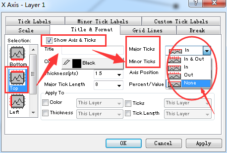 - 在右侧的Major Ticks里选择none*(不显示主要标尺)。