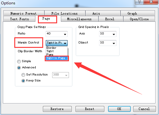 - 选择Tools—Options—Page—Margin Control,选择Tight in Page
