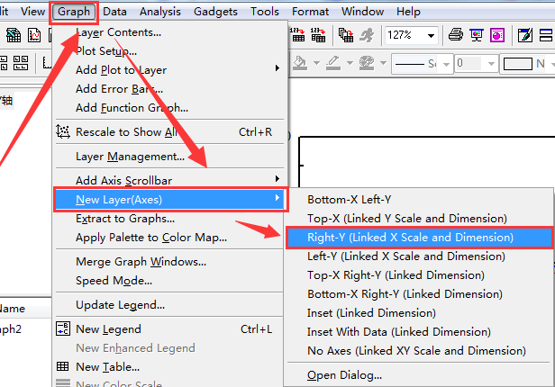 2.选择Graph—New Layer(Axes)—Right-Y,新建一个Y轴图层;