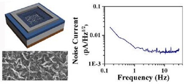 石墨烯纳米墙及其光探测器结构图和光探测器低噪声电流示意图
