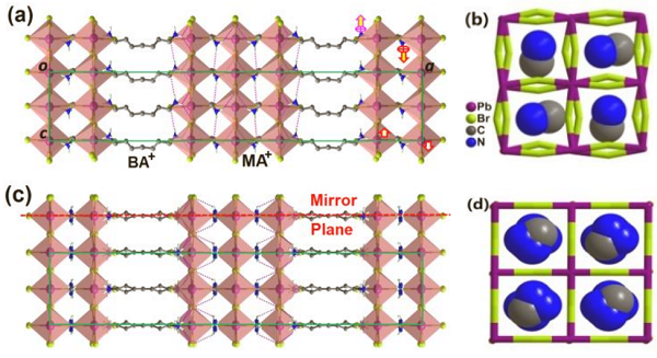 铁电材料是一类特殊的极性化合物,基于自发极化效应表现出优良的非线性光学、压电、热释电和铁电等性能,在信息存储、红外探测、声表面波和集成光电器件等领域有着重要应用,特别在光辐照下材料内部将出现非平衡载流子的激发,诱导电子云结构发生不对称变化,从而诱导宏观极化产生许多新的现象,如反常光伏效应、光折变效应等。近年来,无机/有机杂化钙钛矿材料在太阳能电池、光电器件等方面备受人们关注,其中二维层状钙钛矿材料具有独特的量子限域效应、激子效应和结构易于调控等特点,为设计合成铁电体并组装光电功能器件等提供了极大的可能性与选择性。