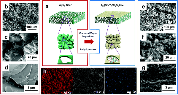 (e-g) Ag@MWCNTs/Al2O3表面形貌;