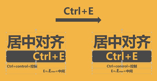 居中快捷键Center的“C”又重复,所以取center第二个字母E。