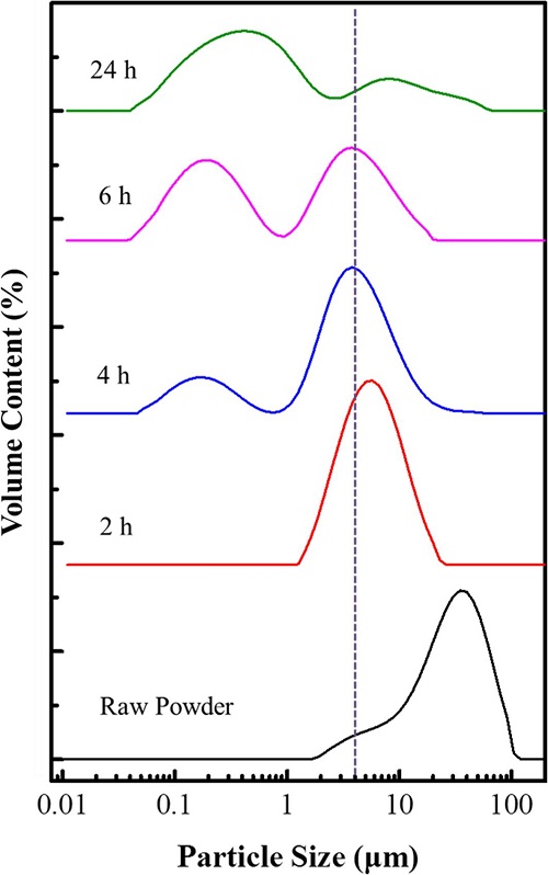 图4:球磨时间对玻璃粉末粒径分布的影响