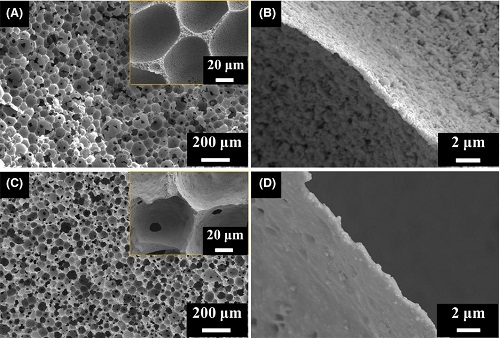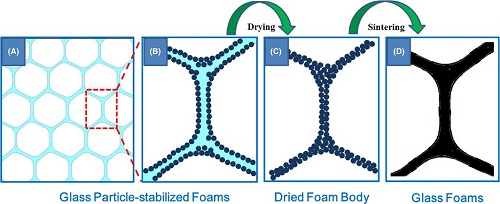近日,清华大学杨金龙教授与华中HTH官网地址 大学吴甲民讲师(共同通讯作者)等人利用胶体悬浮发泡法,制备出具有小孔径的分层多孔结构泡沫玻璃。目前为止,关于泡沫玻璃的研究主要集中在由陶瓷颗粒制备的泡沫上,而以废玻璃粉末为原料的浆料性能尚未被研究。本研究中作者首次证明对废玻璃颗粒进行原位疏水化处理可提高泡沫稳定性。这种新颖的制备方法可用于制造微米级孔径均一的泡沫玻璃,有利于提高泡沫玻璃的抗压强度和耐热性能。该成果以“A novel fabrication method for glass foams with small pore size and controllable pore structure”为题于2017年8月10日发表在期刊Journal of the American Ceramic Society上。