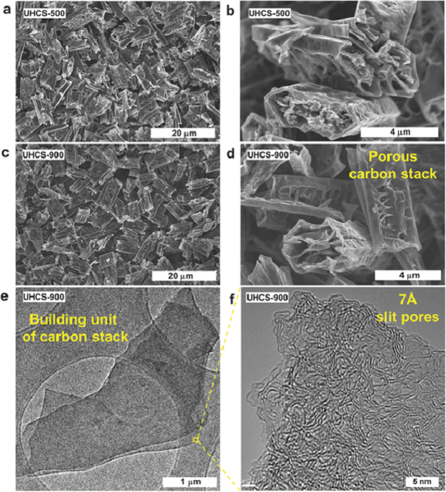 图a. UHCS材料与CVD石墨烯的氮气吸附表征。