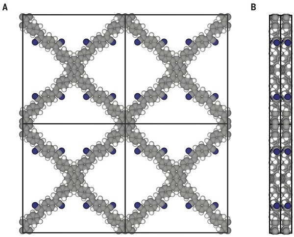 北京时间2017年8月18日,Science刊登了日本北陆先端科学技术大学院大学江东林教授(通讯作者)等人题为“Two-dimensional sp2 carbon–conjugated covalent organic frameworks”的研究论文,报道了关于合成2D共价有机框架(sp2-c-COF)的最新进展,通过TFPPy(tetrakis(4-formylphenyl)pyrene)和PDAN(1,4-phenylenediacetonitrile)中C=C的缩合反应,构建π共轭的2D sp2-c-COF晶体。材料在x和y外延键合形成的2D晶格中,每隔一定距离出现C=C键合的芘节点,因而整个体系表现出有序的层状结构而不是传统的无序结构。该sp2-c-COF有着本征的半导体特性,能隙为1.9 eV,可以通过化学氧化进一步提高其导电性。同时芘节点产生的自由基,可使材料形成具有高自旋密度的顺磁碳结构。