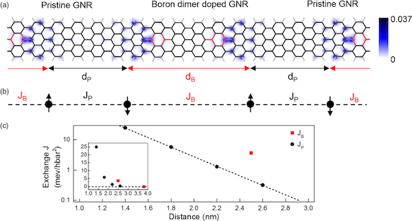 (a) 周期性掺杂硼对(B2-7AGNR)的N = 7 AGNR的结构。