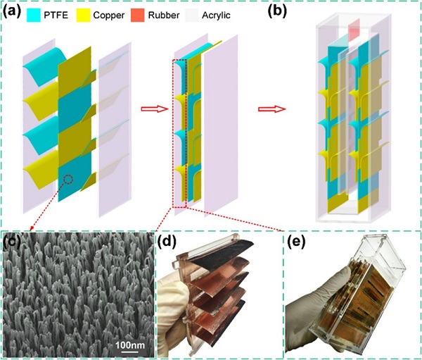 图4.含4个栅格摩擦纳米发电机的电学性能