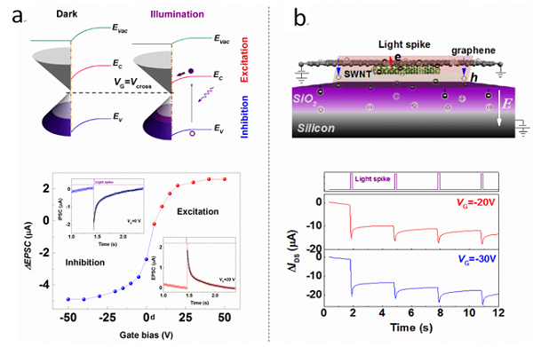 图2 石墨烯/碳纳米管异质结构类突触器件